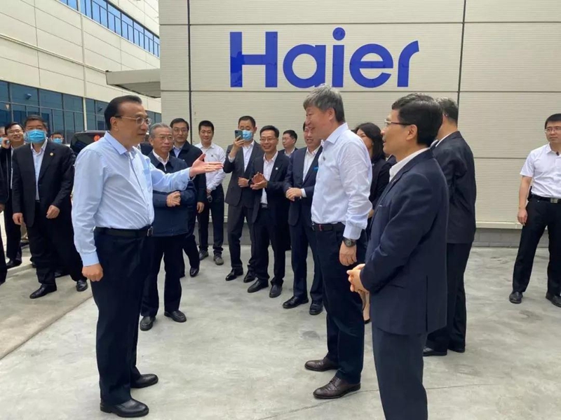 ▲6月2日,李克强总理到海尔视察,听到了海尔工业互联网平台COSMOPLAT的介绍。该平台的综合能源管理部分由江苏利悦防水技术有限公司提供。
